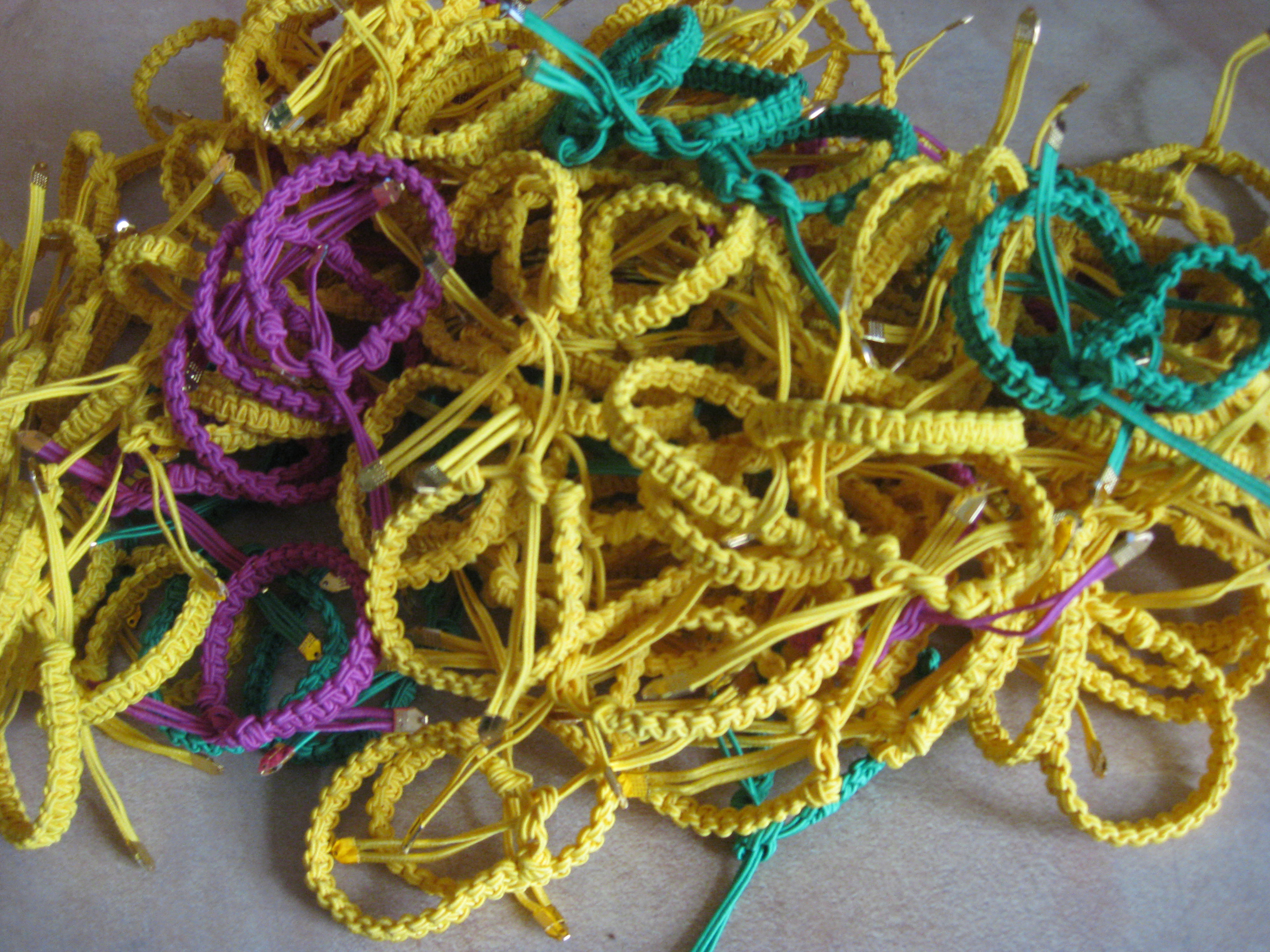 Darbiņš nebija grūts, pat interesants. Sākumā darbiņš, protams, neveicās tik ātri un viegli, bet vēlāk jau pirkstiņi iekustinājās un viss izdevās. Rezultātā mezgloto rokassprādzīšu skaits vairs nebija mērāms desmitos, kā sākumā biju domājusi, bet gan simtos. Šobrīd skaits tuvojas 1 tūkstotim! Pašai pat neticas..