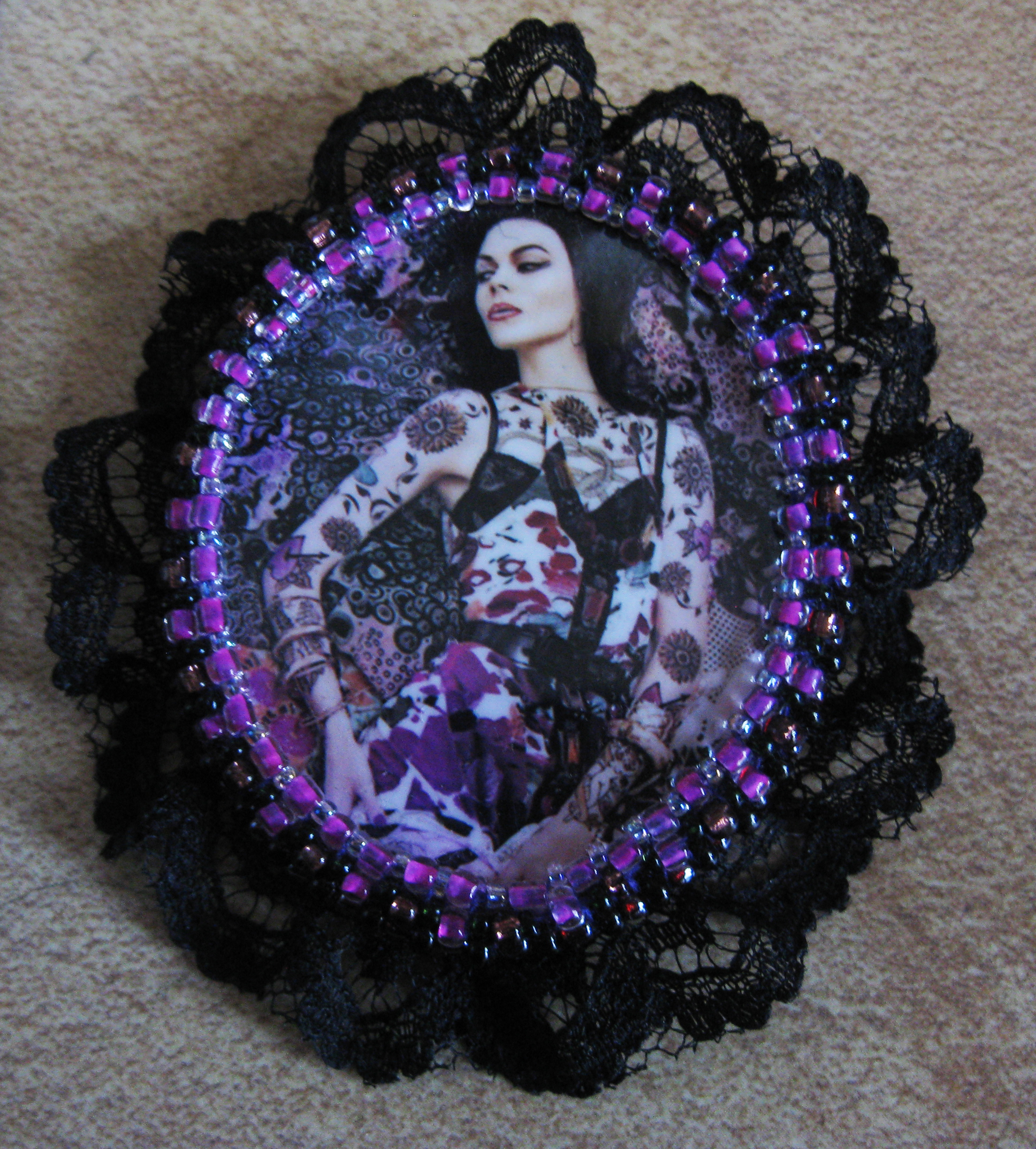 Pirms kāda laika biju kursos, kur apguvu foto piespraudes gatavošanu un kabašona appērļošanu- ar vienu šāvienu noķēru divus zaķus. Kursos izmantojām pasniedzējas materiālus, tādēļ piespraude sanāca tāda dīvaina, bet daudziem tieši tas arī iepatikās.