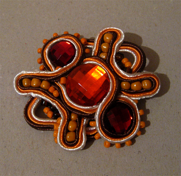Brūni/oranžā sutažas piespraude