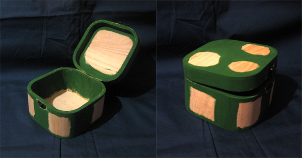 1. Kastīti noklāj ar zaļo akrilkrāsu tajās vietās, kurās veidos plaisas. Nožāvē. Var žāvēt ar fēnu. Ja izmanto fēnu, tad pirms lakas uzlikšanas kastīte ir jāatdzesē